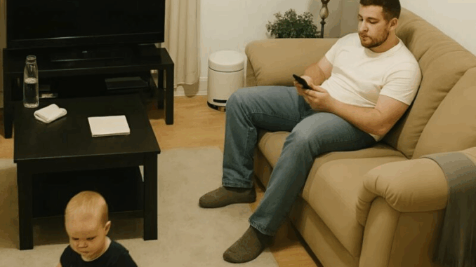 Al principio, mi esposo estaba sentado en el sofá, pegado al teléfono, mientras nuestro hijo deambulaba por la habitación intentando llamar su atención. Extendía sus manitas y le mostraba juguetes, pero mi esposo lo ignoraba con irritación.