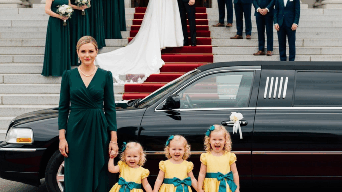 Emma no dudó. Avanzó, sosteniendo con orgullo las manos de sus hijas. La risa de las trillizas inundó el aire; su inocencia derretía corazones mientras miraban a su alrededor con curiosidad. Los invitados no pudieron evitar admirar a las niñas, que parecían ser el reflejo perfecto de la valentía de su madre. En ese momento, la dignidad de Emma eclipsó los diamantes de la novia.