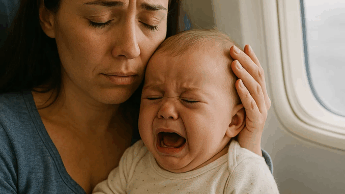 El llanto del bebé atravesó la estrecha cabina del avión, agudo e implacable. Algunas cabezas se giraron, otras suspiraron ruidosamente o se removieron incómodas en sus asientos. Las luces fluorescentes de la cabina zumbaban en el techo, y el aire reciclado se sentía sofocante.