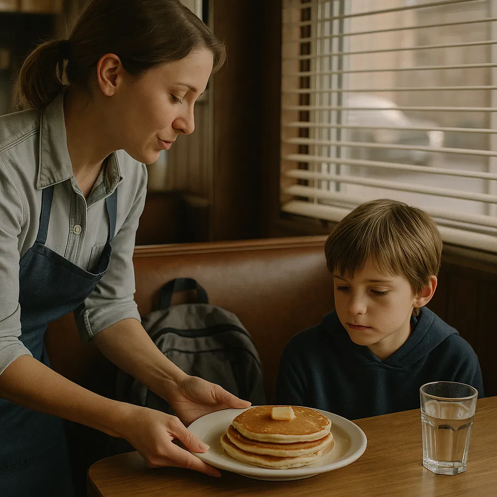Ese se convirtió en su ritual silencioso. Jenny nunca le preguntó su nombre. Él nunca le explicó por qué había venido. Pero cada mañana, ella le traía un desayuno “equivocado”: panqueques, tostadas y huevos, avena en los días fríos. Siempre terminaba cada bocado.