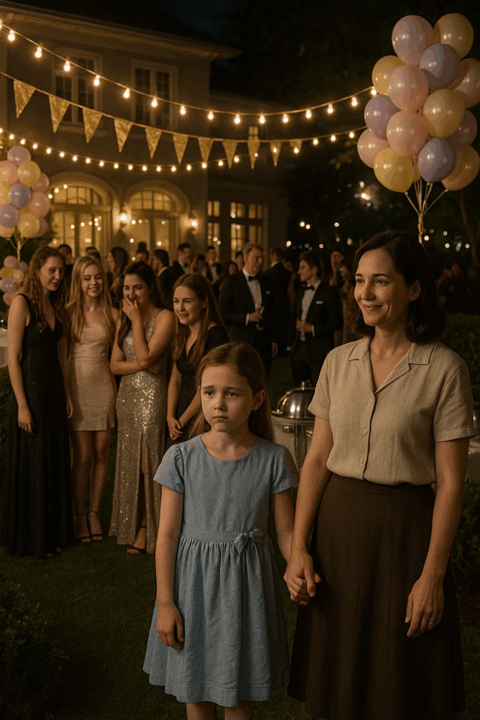 No sabían la verdad: Rachel era madre soltera y tenía dos trabajos. Emma había sido invitada a la fiesta a través del programa de patrocinio del centro comunitario. Rachel había pasado su único día libre cosiendo ese vestido con tela y encaje sobrantes de un traje viejo. Era todo lo que podían permitirse. Pero quería que su hija se sintiera especial.