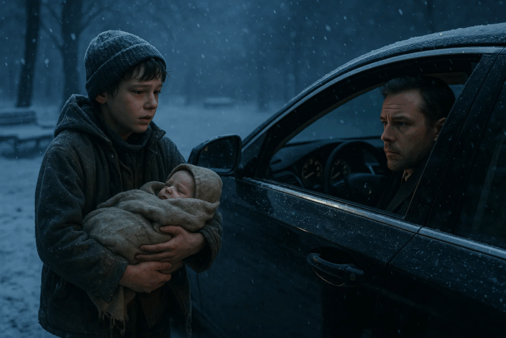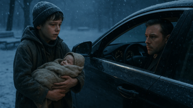 “Es mi hermana”, dijo el niño, levantando la barbilla. “Nuestra mamá… se enfermó. Antes de irse, dijo que la cuidáramos. Intenté ir a los refugios, pero estaban llenos. Y hacía un frío glacial. No sabía adónde más ir”.