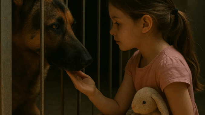 El aire se sentía más pesado a medida que se acercaba. Los demás perros se habían quedado extrañamente callados, como si incluso ellos comprendieran que Sombra era diferente. Dentro de la perrera, la postura del pastor alemán cambió. Bajó la cabeza, aplanó las orejas y un gruñido profundo surgió de su pecho.