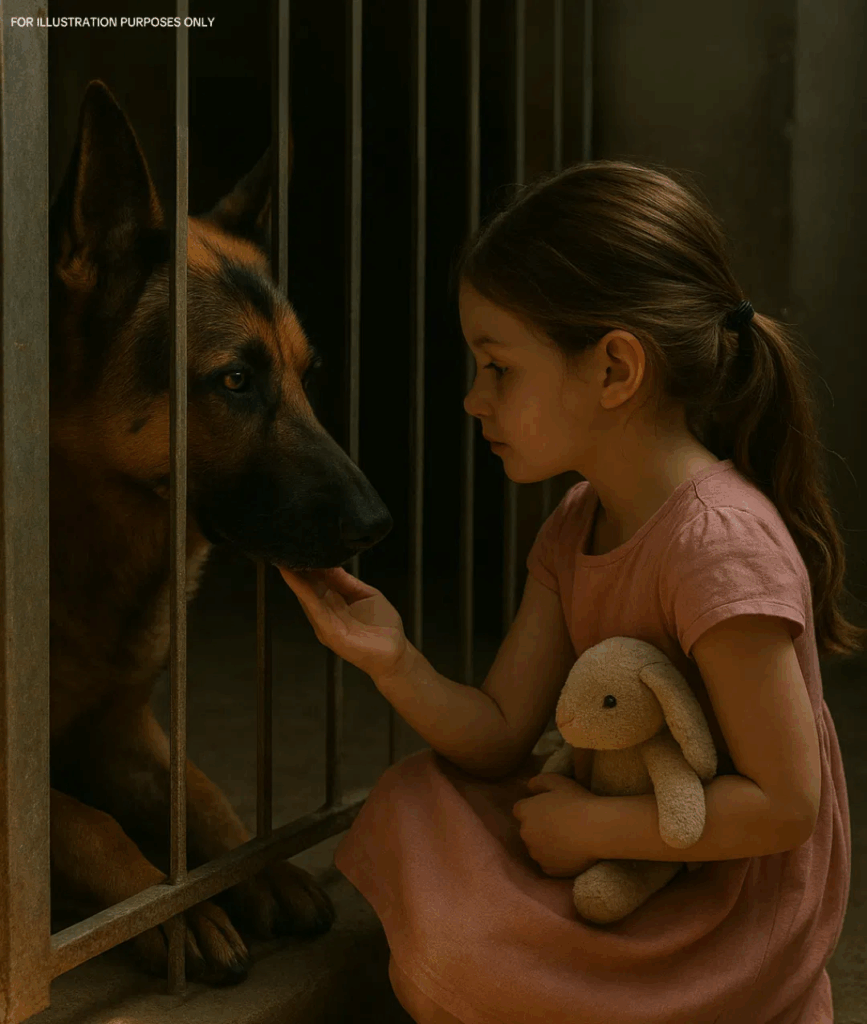 Dentro, un pastor alemán llamado Sombra caminaba de un lado a otro como una tormenta incesante. Su espeso pelaje era oscuro como la medianoche, y sus ojos ámbar, penetrantes y sin pestañear, parecían atravesar a cualquiera que se atreviera a cruzarse con ellos. Un gruñido sordo y retumbante salía a menudo de su pecho, desalentando incluso a los visitantes más valientes.