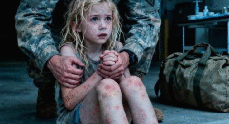 Sophie. Mi pequeña de siete años, sentada en el frío suelo de cemento como un fantasma. Tenía el pelo enmarañado, la cara pálida y llena de picaduras de mosquito. Sus bracitos estaban cubiertos de ronchas rojas. Me miró con los ojos hundidos y susurró: «Papá… El novio de mamá dijo que este es mi lugar».