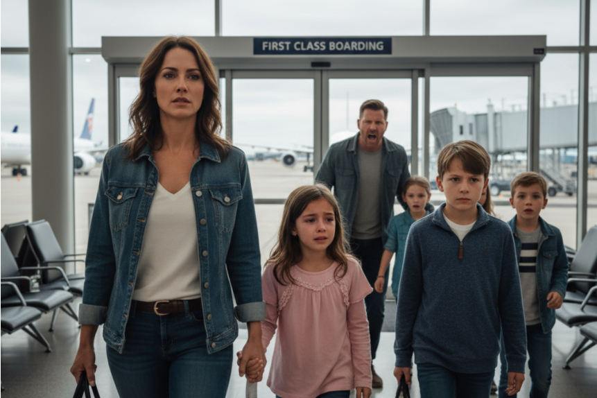 En resumen, quería que mis hijos y yo lo acompañáramos para el Día de Acción de Gracias con su familia, que vive al otro lado del país. Teníamos que salir ayer, unos días antes para alquilar un coche. Él reservó los billetes y se encargó de todos los preparativos. Pero antes del vuelo, me enteré de que él, sus hijos y yo teníamos reserva en primera clase… mientras que mis dos hijos (de 14 y 10 años) estaban en clase turista.