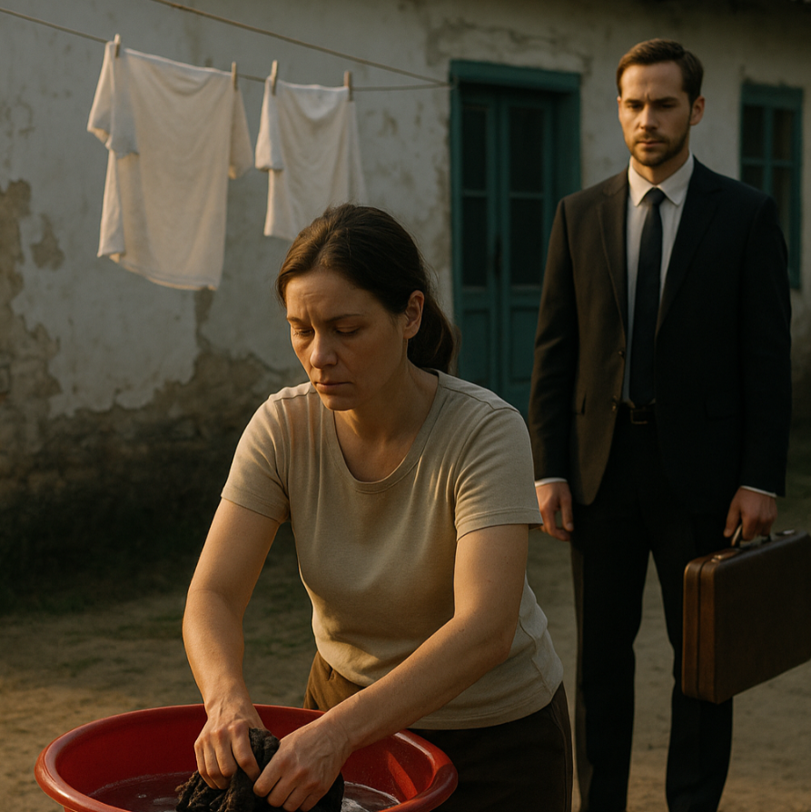 La tela blanca relucía bajo el sol, goteando agua perfumada con lavanda. Frotó con cuidado, casi con reverencia, como si limpiara algo sagrado.