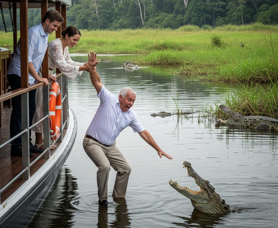 Llegamos a una curva solitaria donde, según se rumoreaba, los cocodrilos tomaban el sol en las orillas. El guía estaba de espaldas. La barca se mecía suavemente. Mi esposa —que había aprendido a sonreír como una fotógrafa experimentada— se acercó, y su voz fue un susurro al oído.