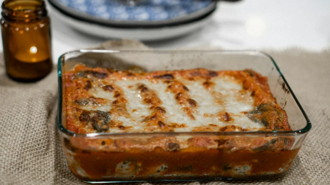 Lasaña al horno servida en una bandeja de cristal | Fuente: Pexels