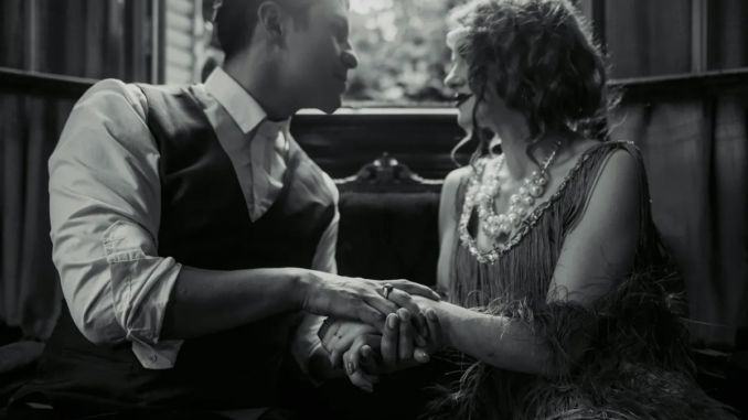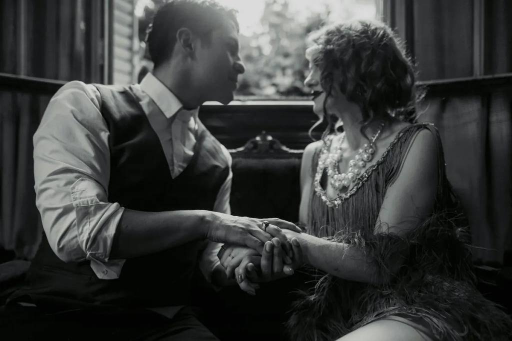 Toma en escala de grises de un hombre que sostiene la mano de una mujer rica y la mira | Fuente: Pexels