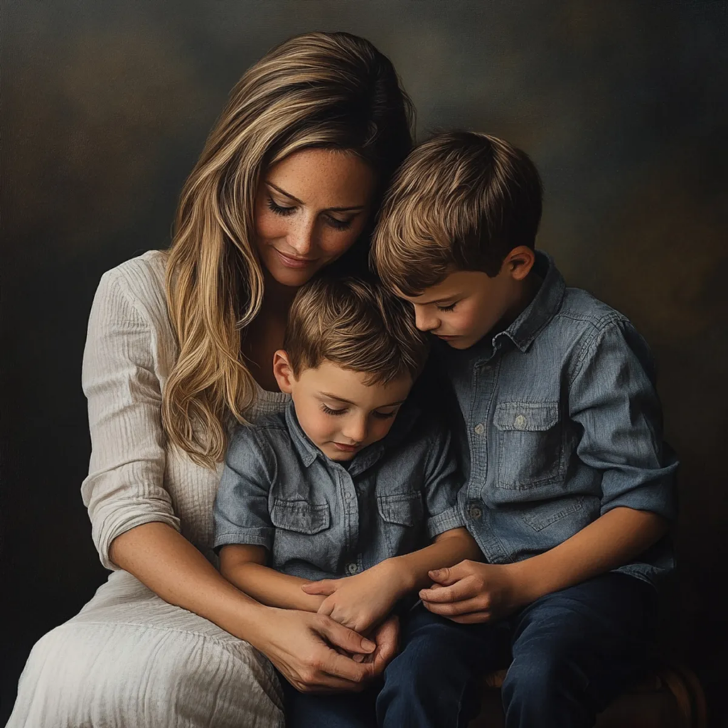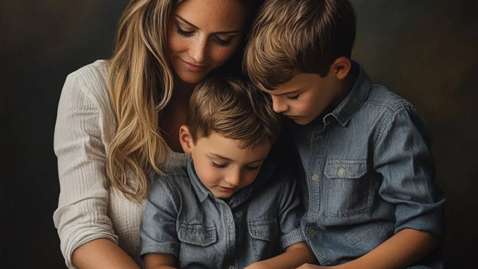 Una mujer abrazando a sus hijos | Fuente: Midjourney