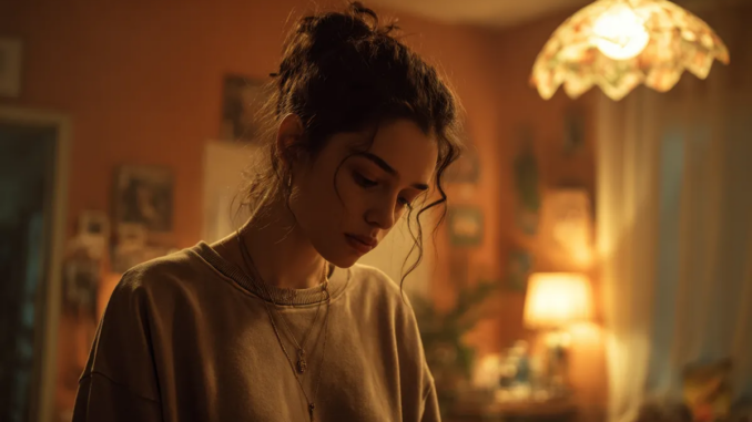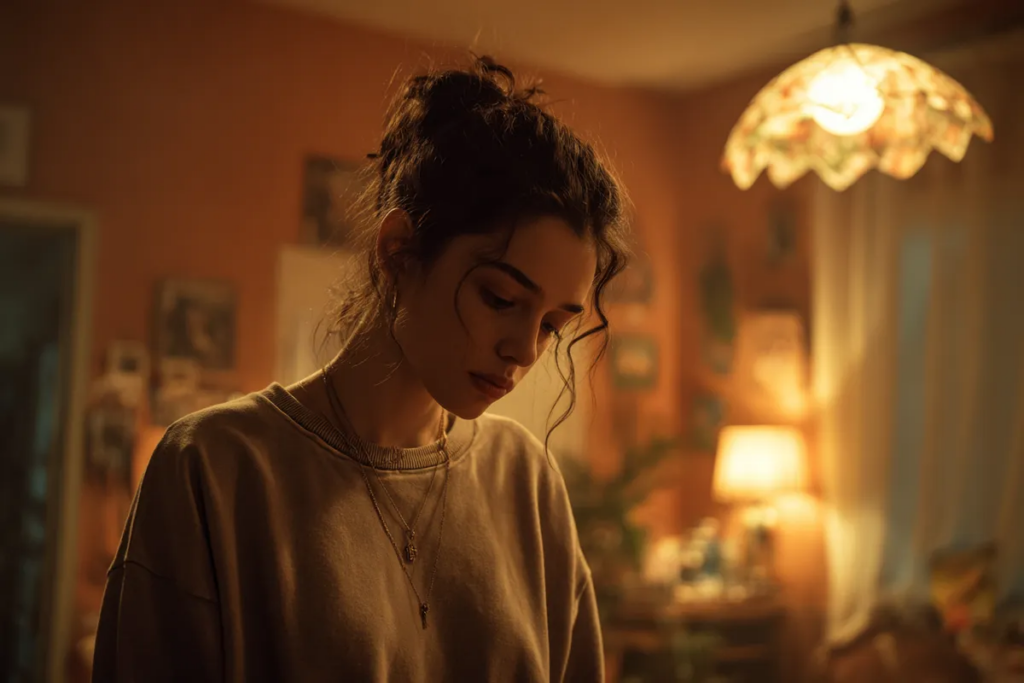 Una mujer de pie en su habitación | Fuente: Midjourney