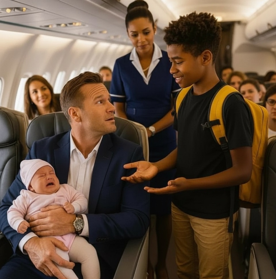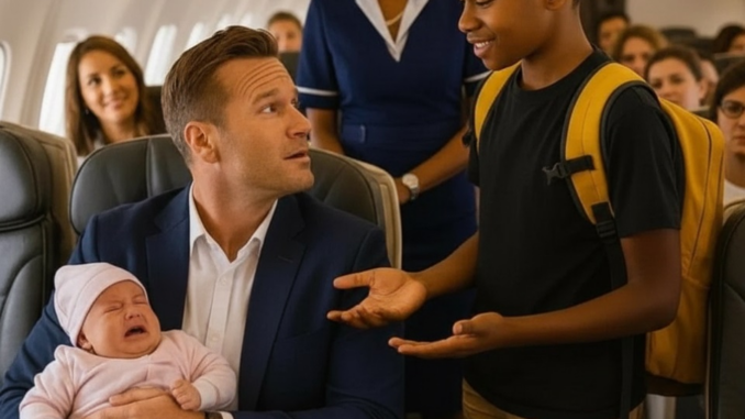Los lamentos de la pequeña Nora resonaban en la lujosa cabina del vuelo de Boston a Zúrich, llenando cada rincón de la tranquila sección de primera clase. Los pasajeros se removían en sus asientos de cuero, intercambiando miradas irritadas y sonrisas forzadas para disimular su creciente incomodidad.