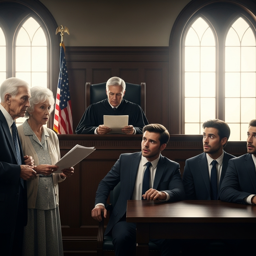 La sala del tribunal se movió y todas las miradas se volvieron hacia la pareja de ancianos.