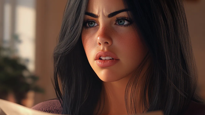 Una mujer con cara de sospecha sosteniendo un documento | Fuente: Midjourney