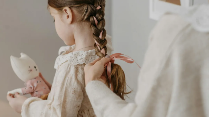 Una mujer trenzando el pelo de una niña | Fuente: Pexels