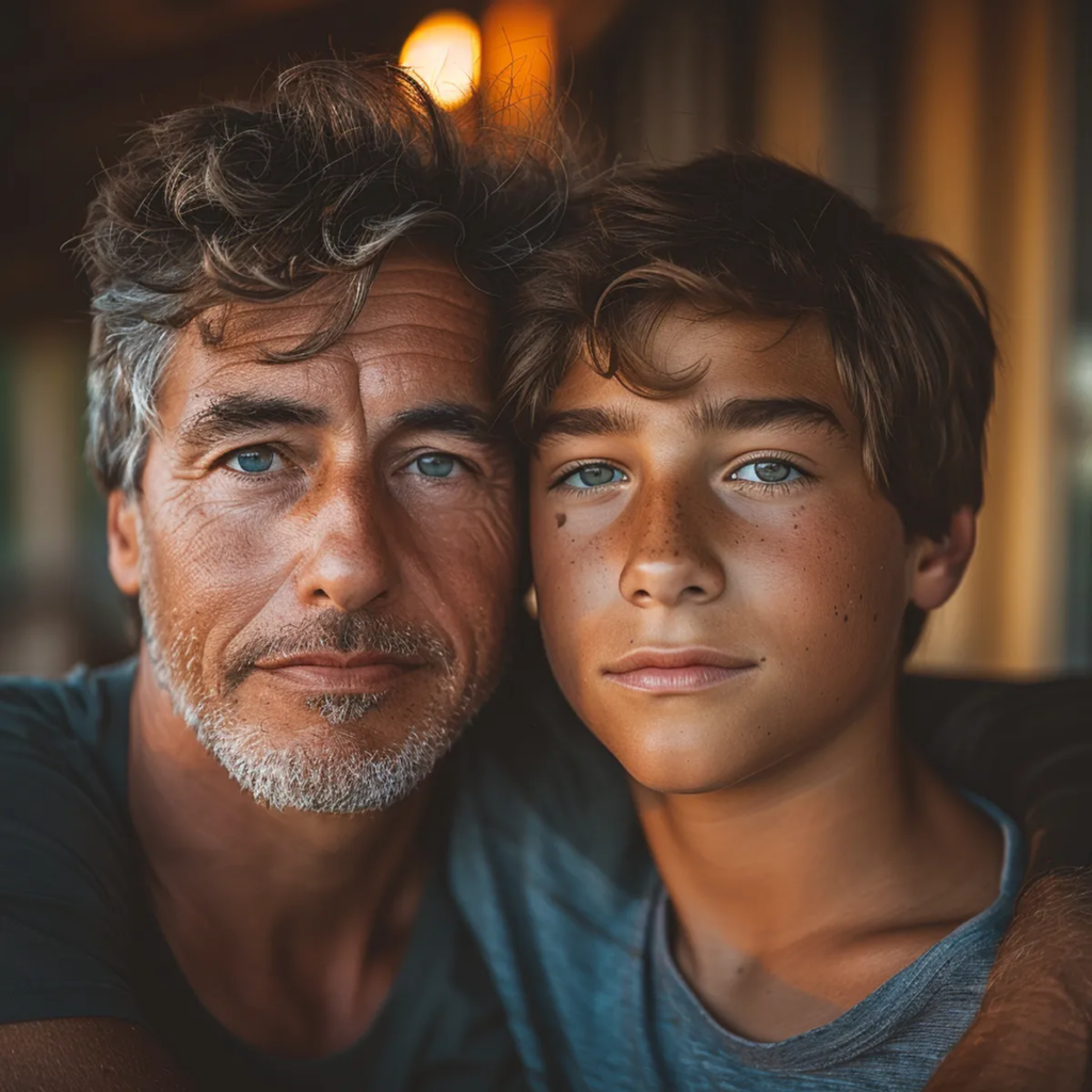 Mark abraza a su hijo | Fuente: Midjourney