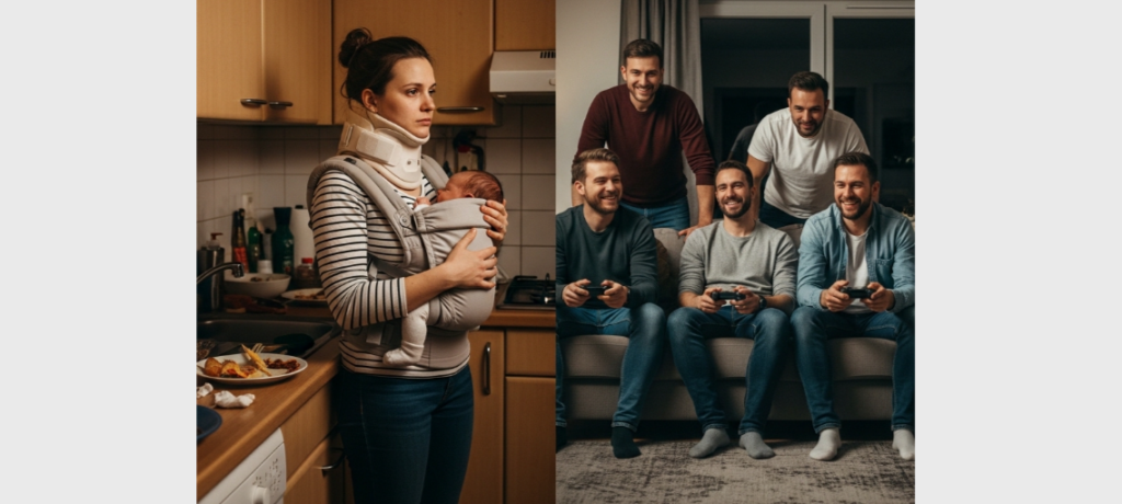 En un momento, lo escuché decir: “Está de vacaciones. Debe ser agradable estar con el bebé todo el día”, y sus amigos se rieron como si fuera lo más gracioso.