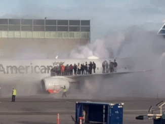 Se ve a los pasajeros de un avión saliendo del avión y parándose en el ala mientras el humo se eleva a su alrededor en […]